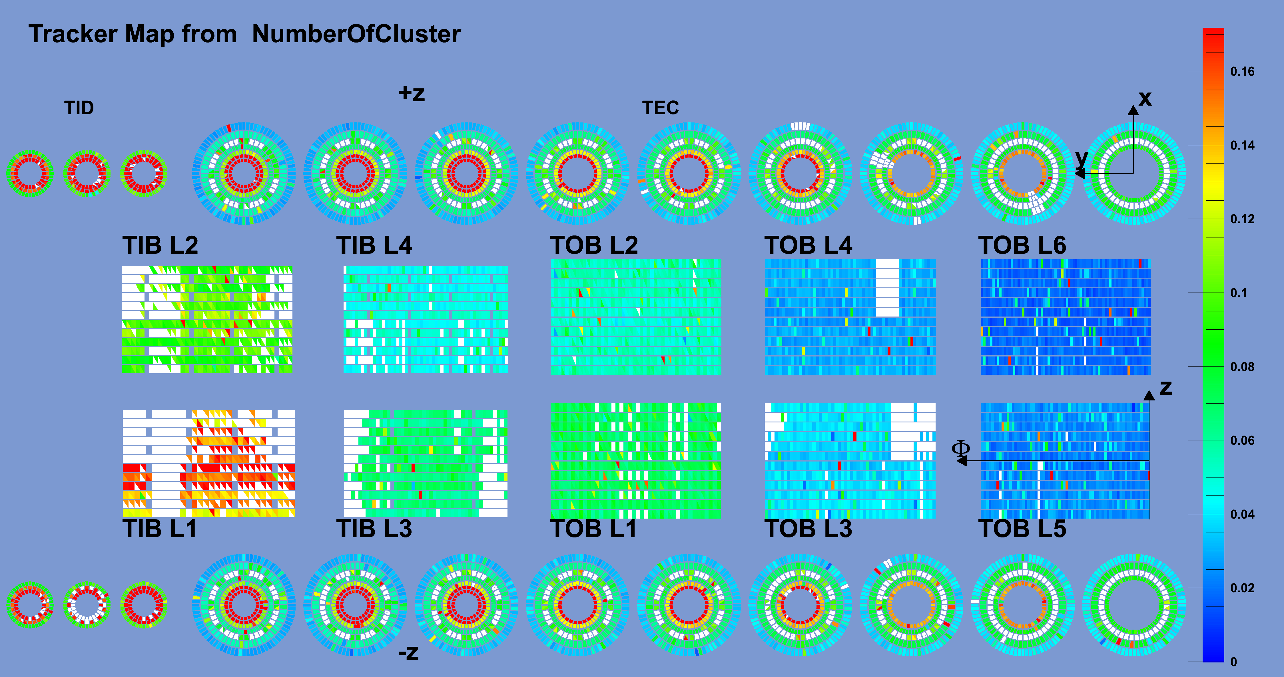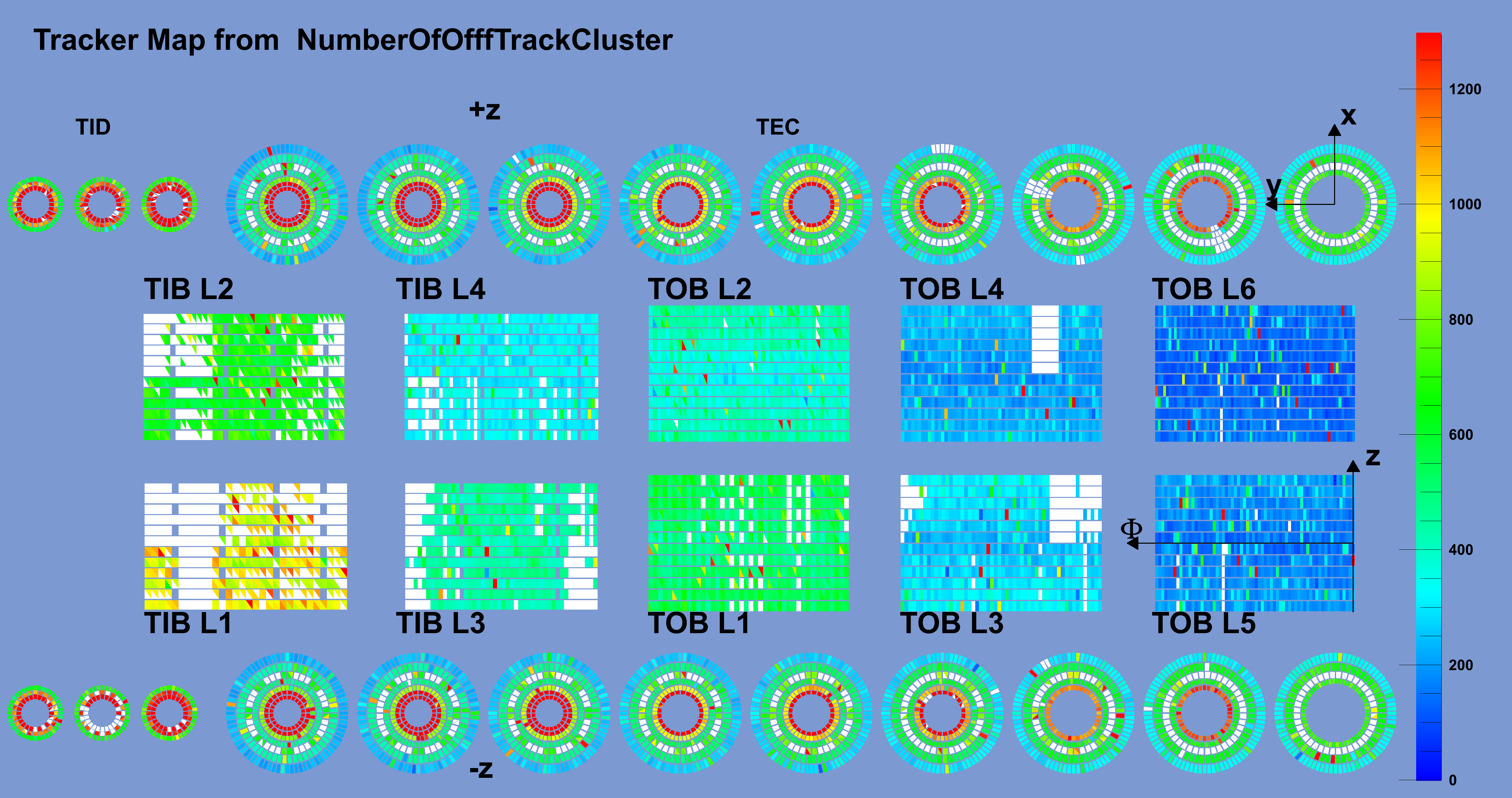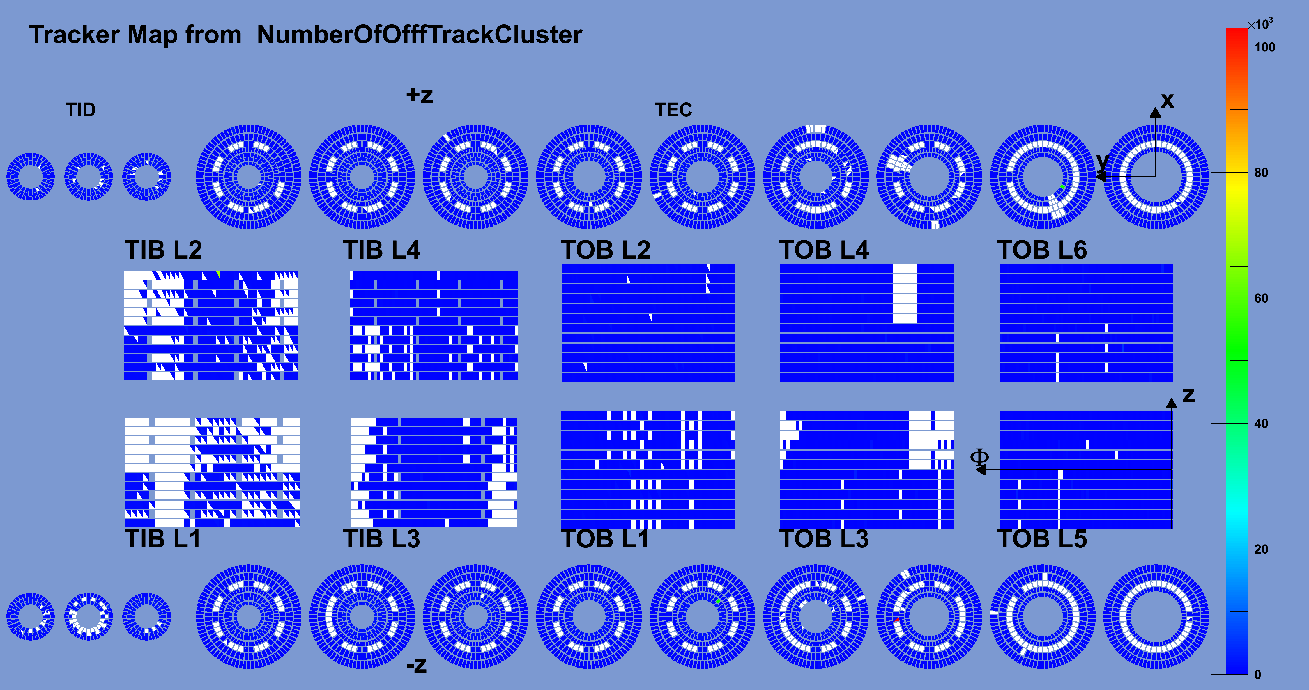 Number of clusters off-track per module